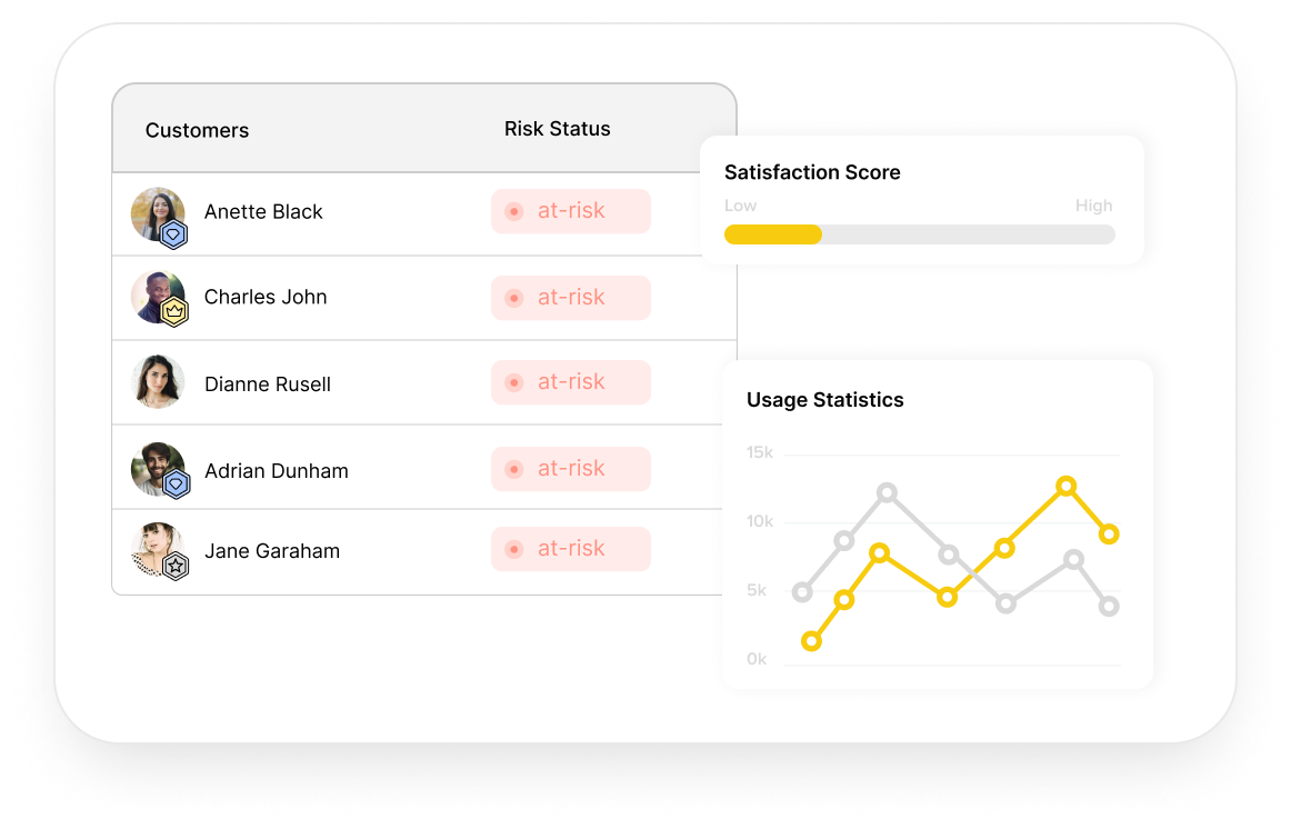 Our sophisticated system meticulously monitors how customers interact with your product, highlighting those who might be on the brink of churning. Perhaps their login frequency has decreased, or they haven’t utilized key features recently. These seemingly minor cues accumulate, and identifying them early provides you with the opportunity for immediate intervention.