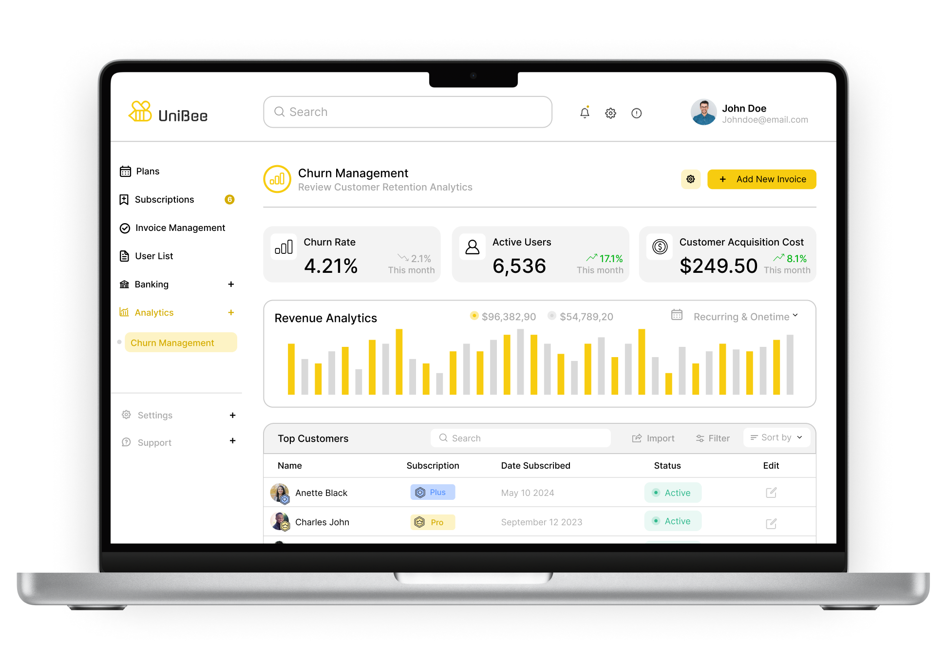 So it seems churn doesn’t have to be an inevitable aspect of your business. With UniBee, you acquire the tools and insights to significantly lower your churn rate, recoup lost revenue, and foster stronger, more enduring relationships with your customers. The most compelling aspect? You can begin to witness tangible results remarkably swiftly.
